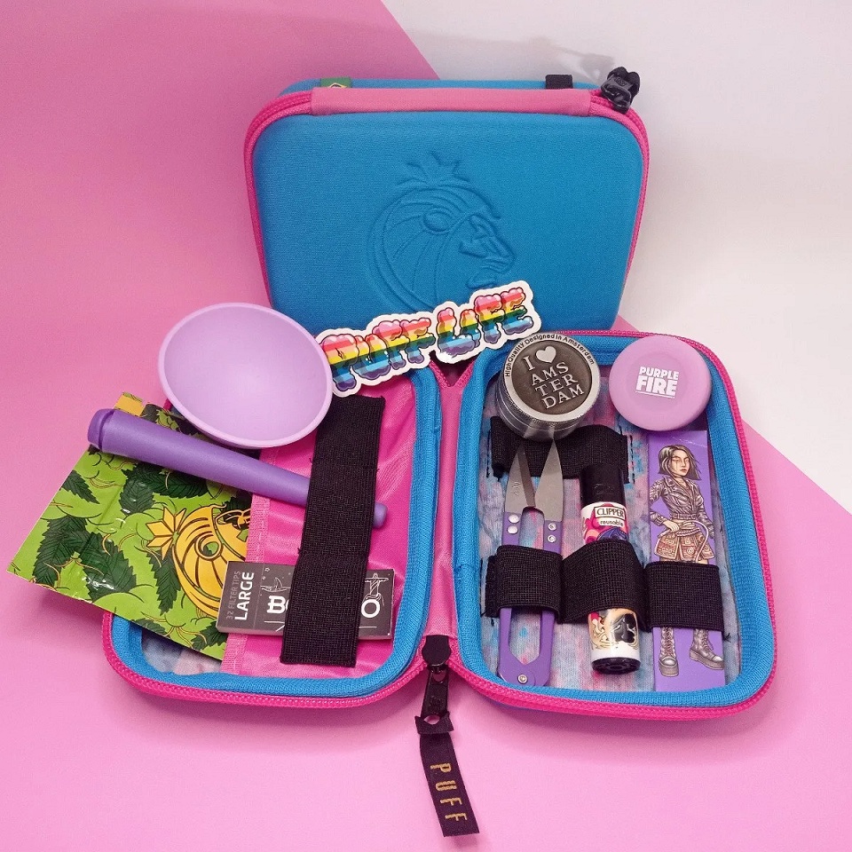 Estojo Puff Collors Rosa Kit Completo Com Itens