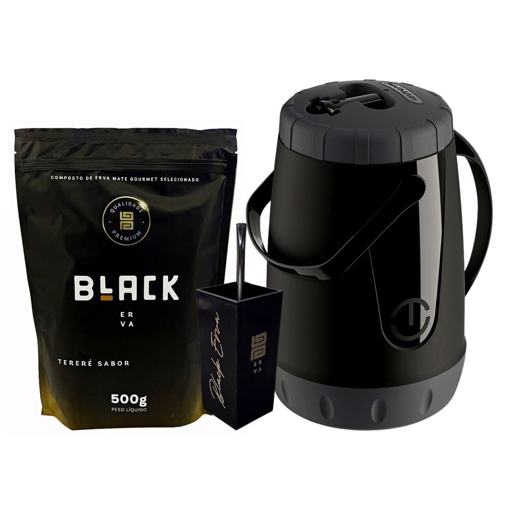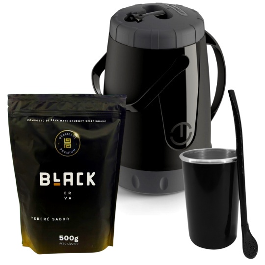 Kit Tereré Completo Garrafa Térmica 2,5L Erva Black 500g Copo Cuia E Bomba Pretas
