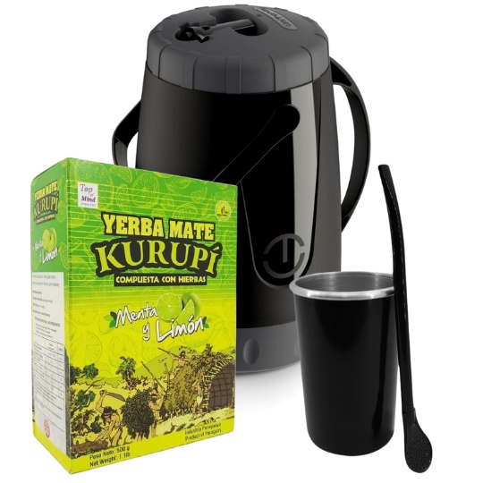 Kit Tereré 1 Garrafa Térmica 2,5L Unitermi 1 Cuia e Bomba Preta Aports 1 Erva Kurupi 500g