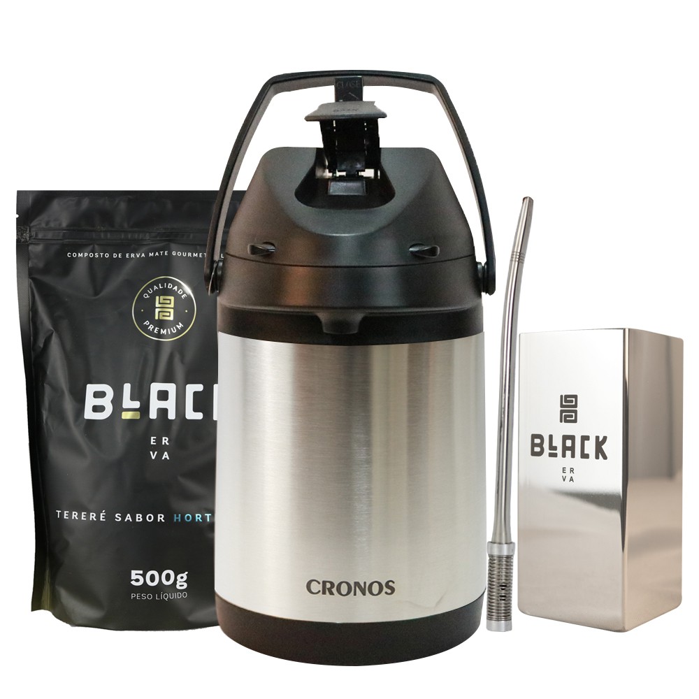Kit Tereré 1 Erva Black 500G 1 Garrafa Cronos 2,5L 1 Cuia Quadrada Inox 1 Bomba - Hortelã Ice