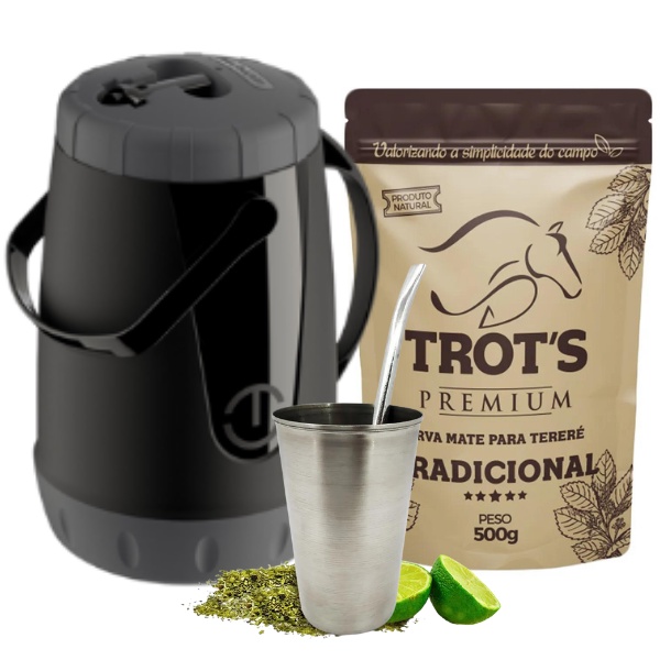 Kit Para Tereré 1 Garrafa Unitermi 2,5L Preta 1 Copo De Inox 200ml 1 Bomba Lisa Para Tereré 1 Erva Trot's 500g