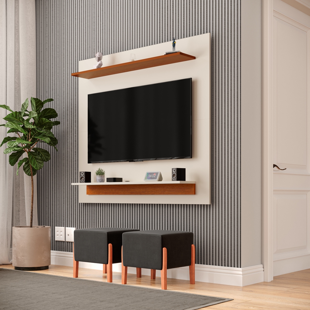 Painel Home Estante Paris para TV até 50 Polegadas 2 Prateleiras Luxo Moderno Quarto Sala