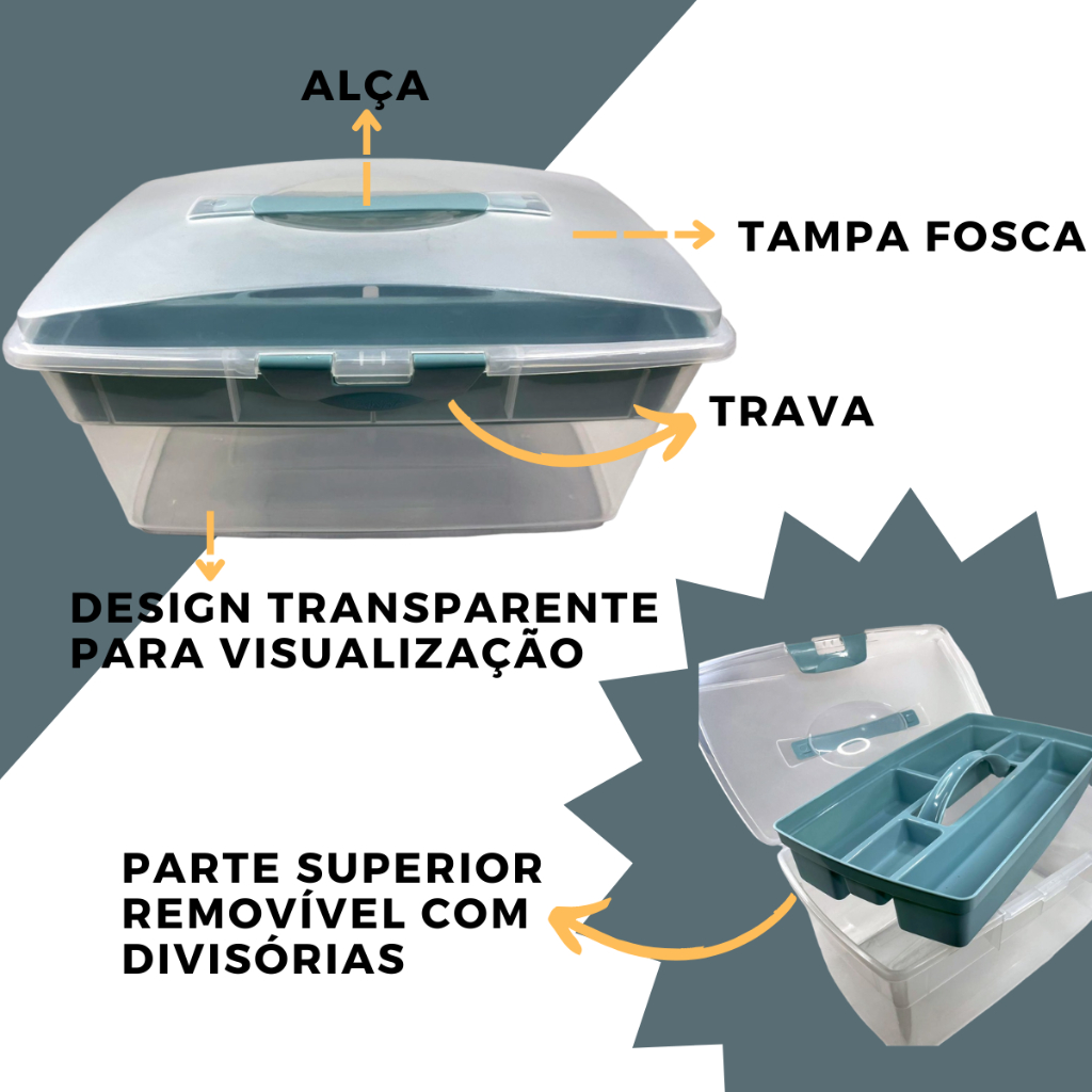 Maleta Organizadora Caixa Organizadora 18 Divisórias Transparente com Alça Plástica retangular de plástico