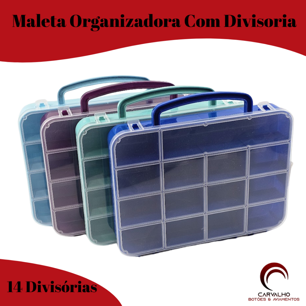 Maleta Organizadora Caixa Plastica Com 14 Divisorias Com Alça De Plastico Para Bijuterias