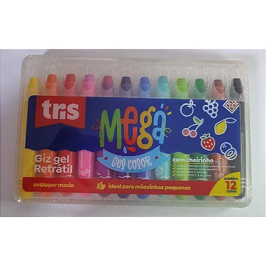 Giz de Cera Retrátil 12 Cores Metálicas Tris Mega Gel Color