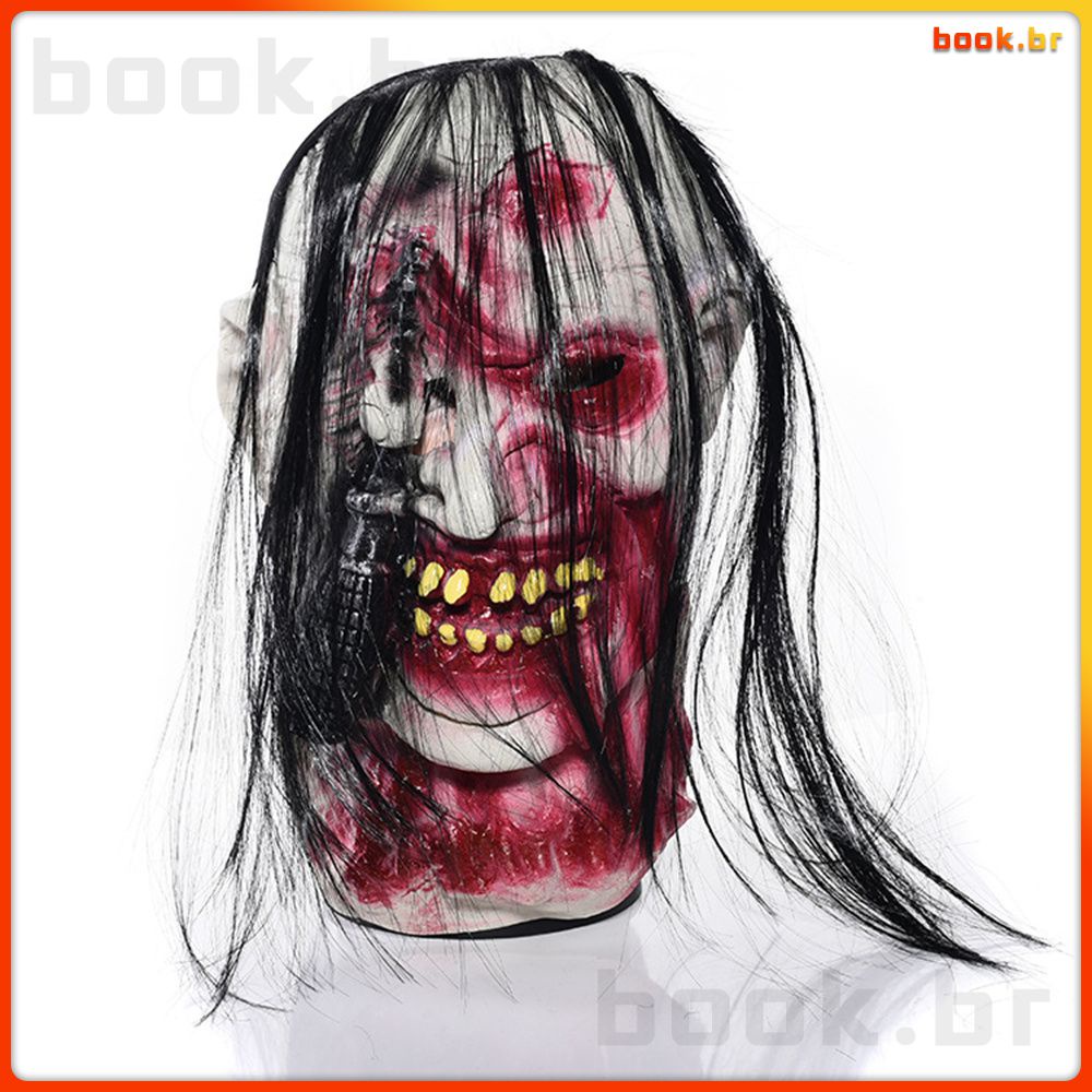 Halloween Assustador Sangue Artificial Rosto Máscara Fantasma Cabelo Longo Feminino Máscara De Látex Fantasma | livro_br