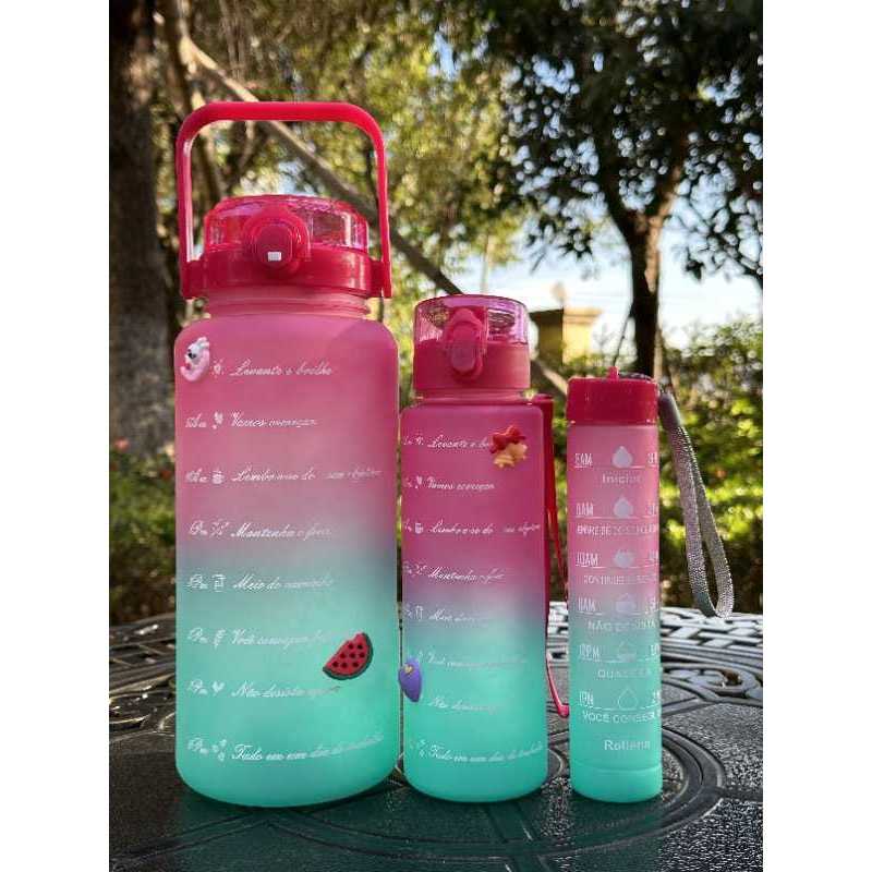 Kit Garrafas Squeeze 3 em 1 garrafas 2Lts 900ml 300ml Motivacional Treino Academia Pronta Entrega ENVIO COR ALEATORIA
