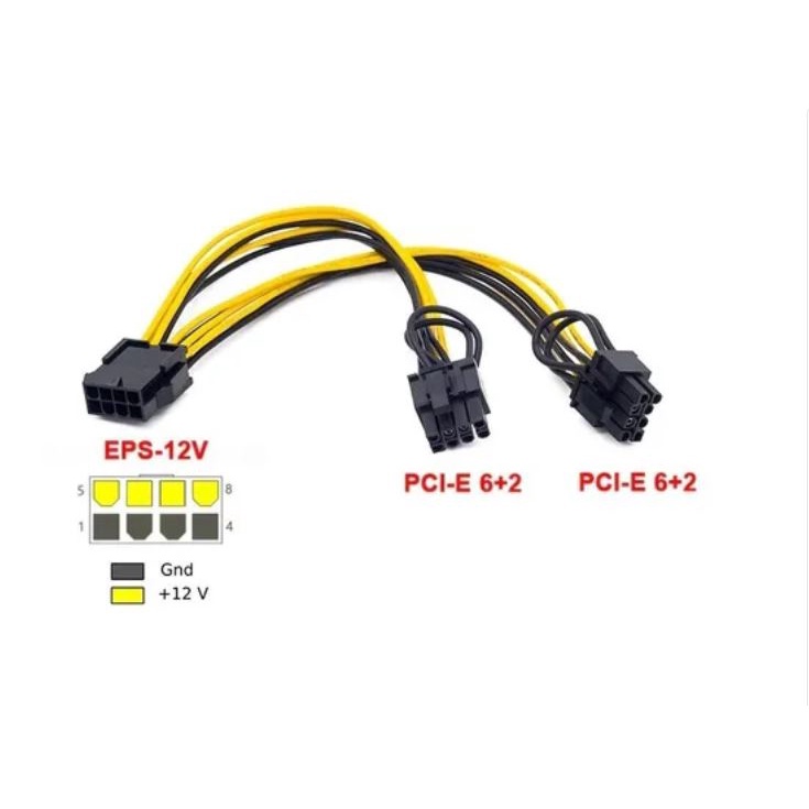 Cabo Adaptador Eps Cpu 8 Pinos Para 2 X Pci-e 8 (6 + 2) 20 cm