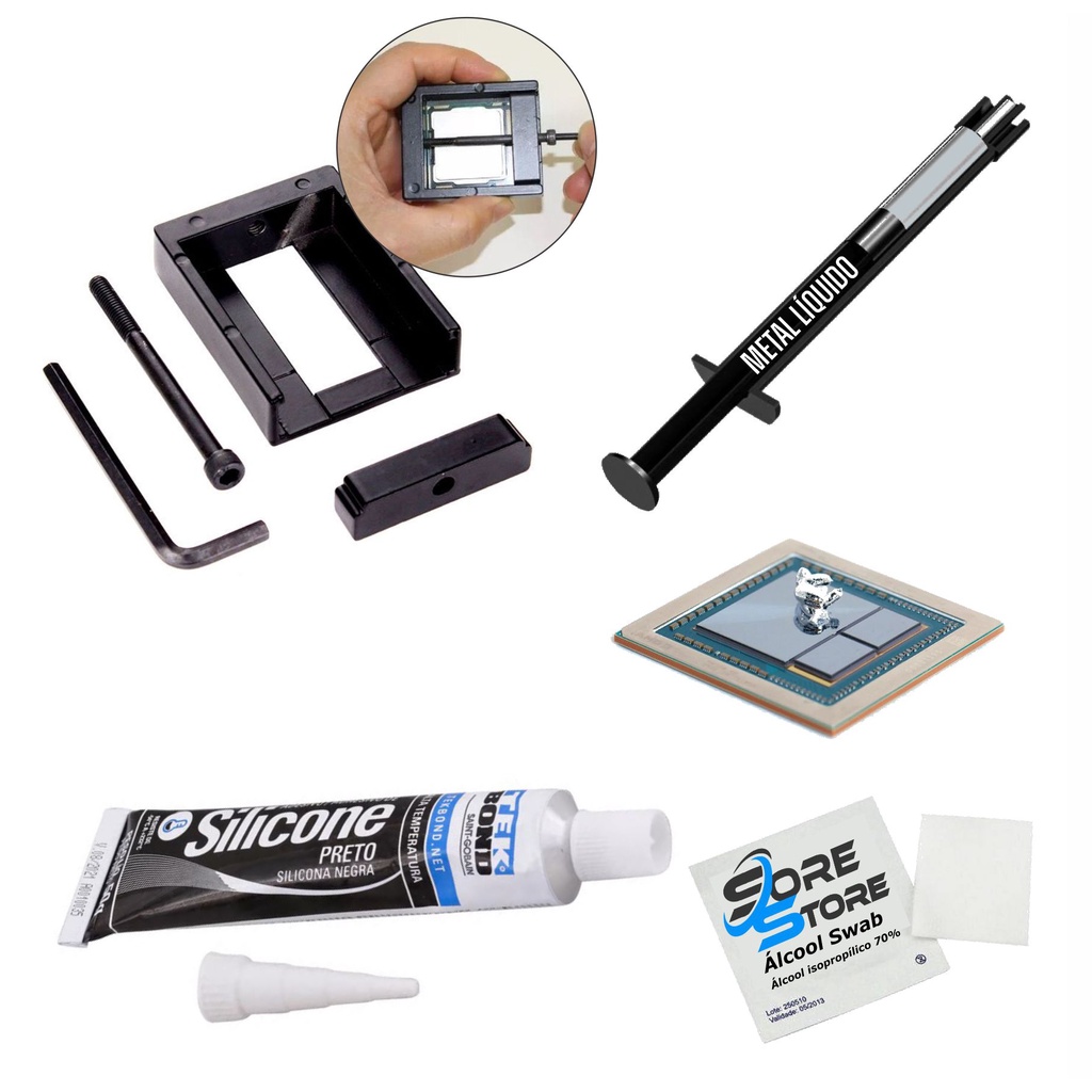 KIT Ferramenta Delid + LT-100 Metal Liquido + Silicone Neutro - Intel LGA 115X