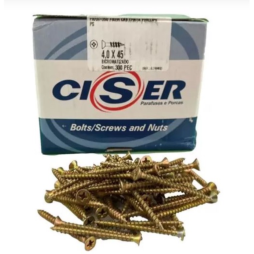 Parafuso 4,0x45 Chipboard Chata Phillips para Madeira - CISER CAIXA COM 300 peças ou HD com 500 - 4,0x45 / parafusos para madeira