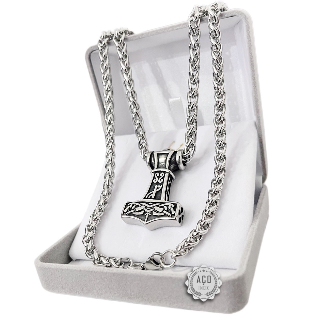 Colar Viking Martelo Nórdico Thor Mjolnir Aço Maciço