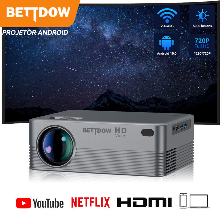 GOOJODOQ Android 10.0 Portable Projector 4K HDMI input 2.4G/5G dual-band Mini Home Projector Bluetooth5.0 Mini Projector