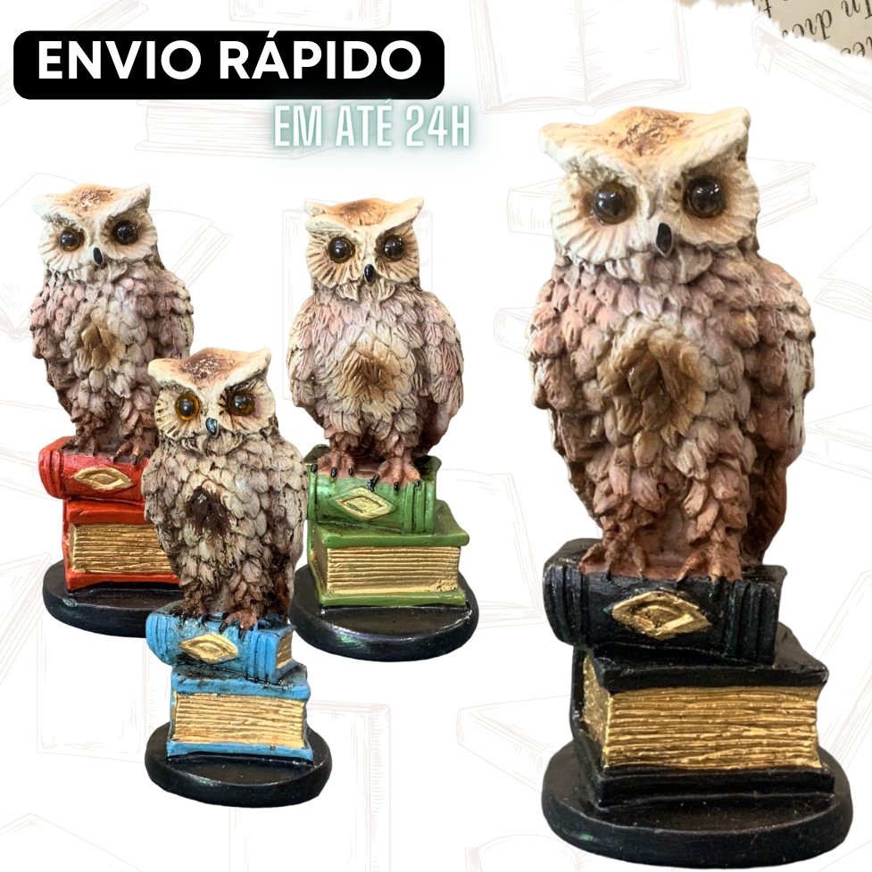 Estatueta Coruja Da Sabedoria No Livro Decoração Rack Mesa