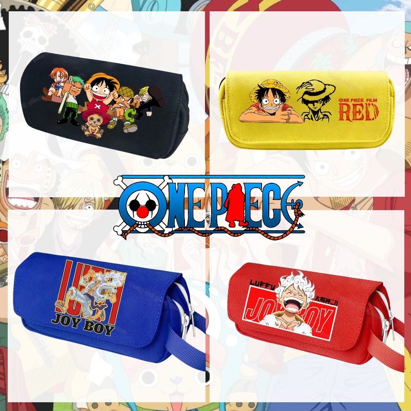 Novo Saco Para Caneta De Desenho Animado ONE PIECE Lápis De Grande Capacidade Dupla Camada Luffy Papelaria Impresso Presentes Estudantes