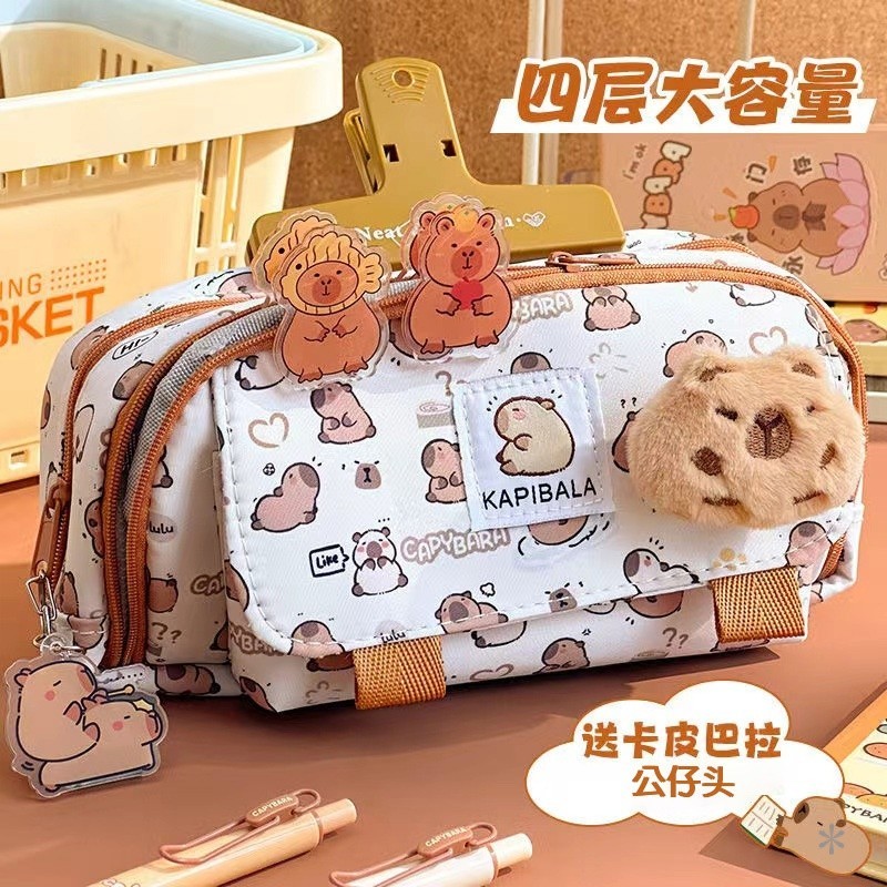 Novo estojo de lápis Kapibara em estilo Kapibara Saco de papelaria multifuncional de três camadas de alta aparência Saco de papelaria multifuncional de grande capacidade para estudantes