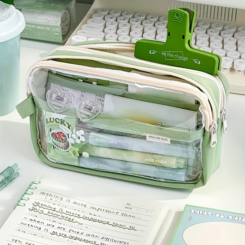 Saco De Lápis Transparente De Três Camadas super Grande Capacidade Morandi Novo Estojo Estudantil