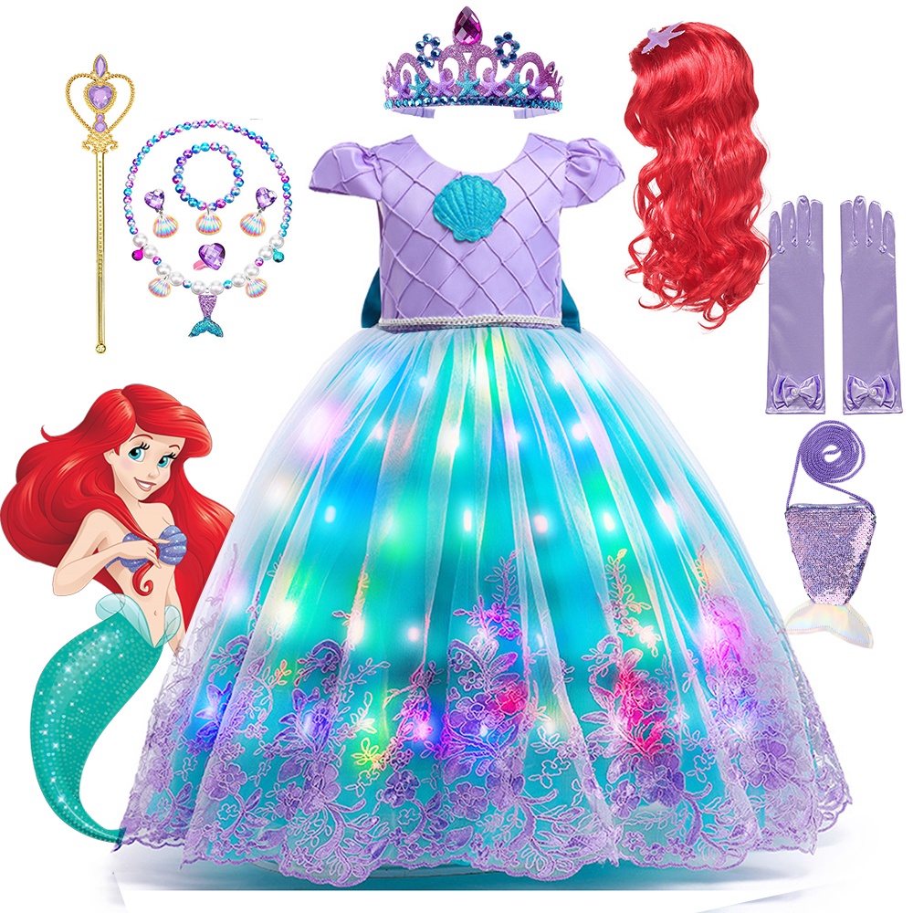 Q50 Roupa De Bola De Sereia Para Menina Vestido LED Iluminar Ariel Cosplay De Festa De Aniversário Crianças Princesa De Luxo