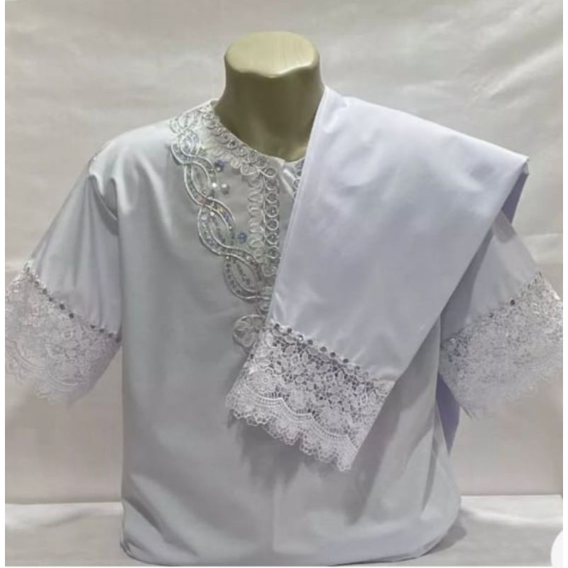 Roupa Umbanda Candomblé Ração Branca 3 Peças Bata, Calça E Pano De Cabeça