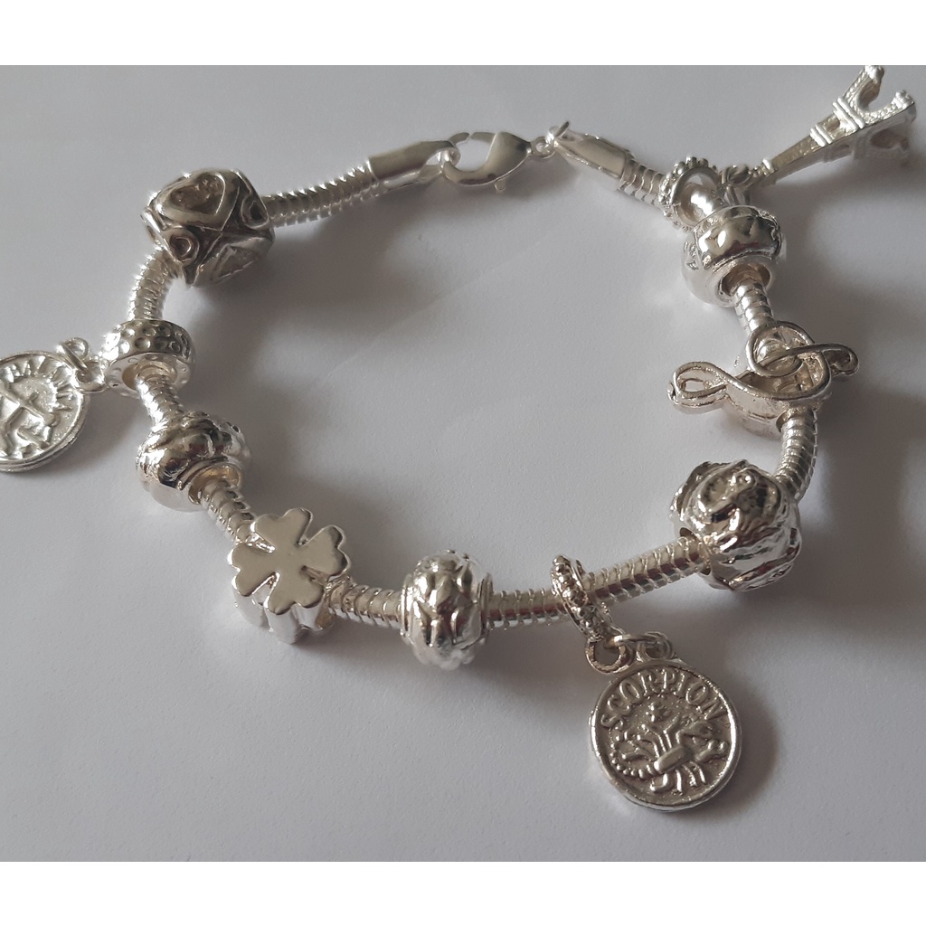 Pulseira pandora berloque kit torre eifel trevo signos separador nota musical outros banhado a prata