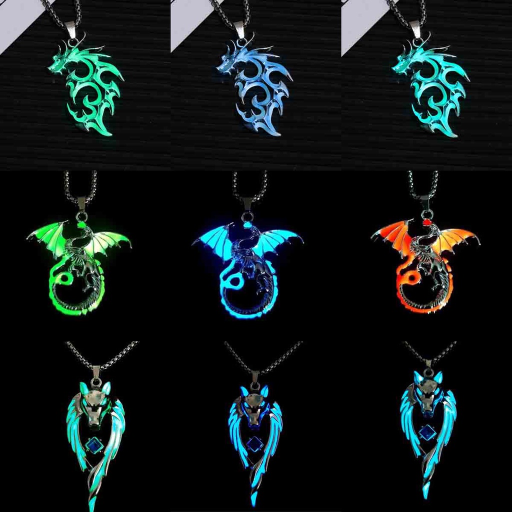 Colar Feminino Masculino Vintage Hip Hop Luminoso Pingente De Lobo Dragão/Gótico Punk Totem Glowing Choker Glow In The Dark Necklaces Unisexo De Corrente De Aço Inoxidável/Fluorescent Chain Acessórios De Joias De Festa
