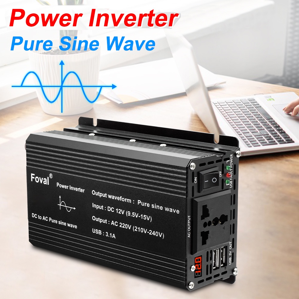 Inversor De Energia Automática DC 12V Para AC 220V Onda Senoidal Pura 1500W/2200W LED Voltímetro Conversor Transformador