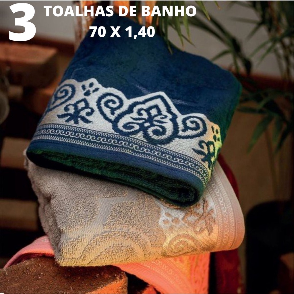 Kit Jogo 3 Toalhas De Banho Linha Luxo Prime Marrocos - 70x1,40 400 G/m2 100% Algodão - Alta Qualidade