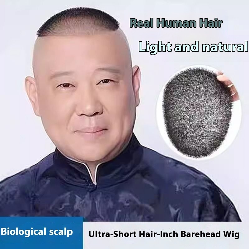100 % Real Perucas De Cabelo Humano Dos Homens Curto Completa Peruca Para Homem Careca Presente O Dia Pais