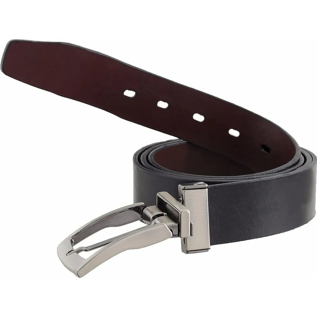 Cinto Dupla Face Em Couro Com Fivela Giratória