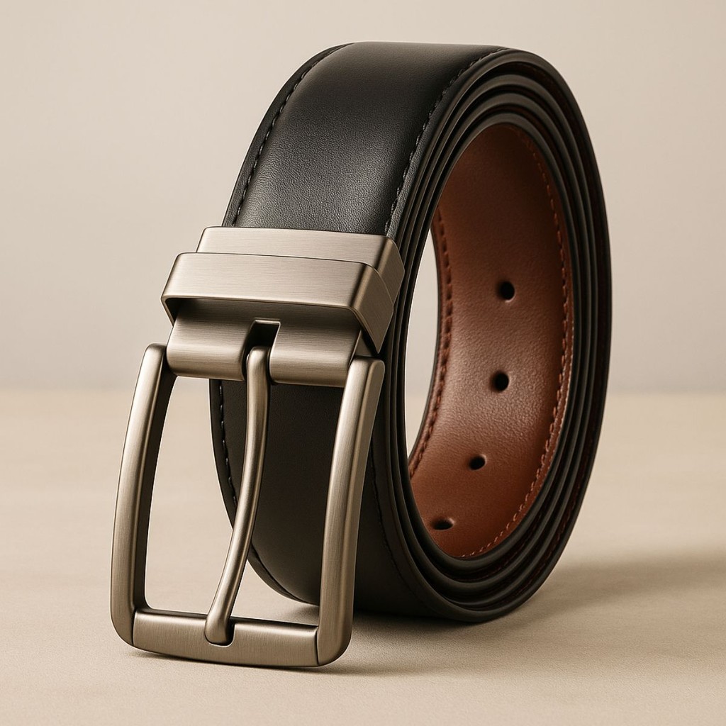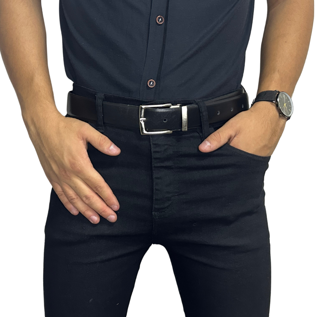 Cinto Masculino Dupla Face em Couro com Fivela Ajustável - Envio Imediato