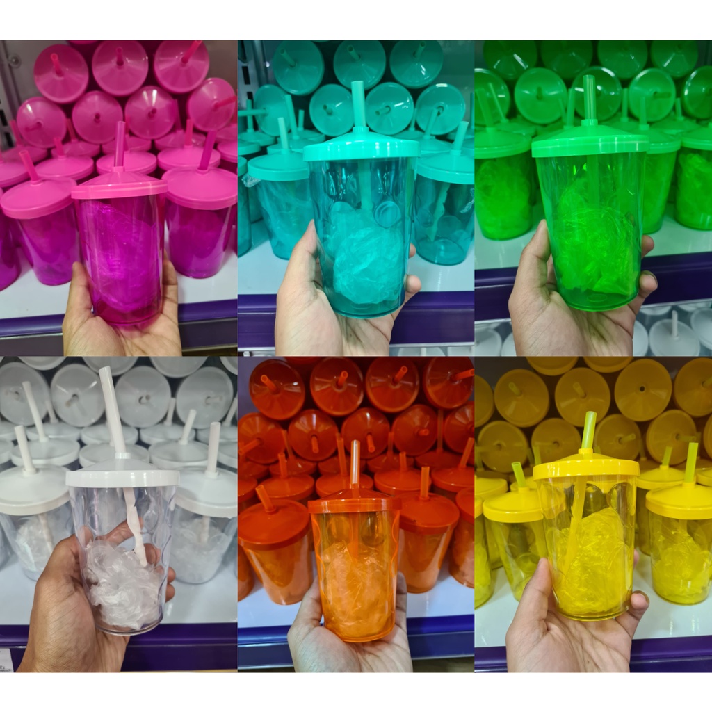 Kit 10 Copos Acrilico Neon Tampa e Canudo 300 ml