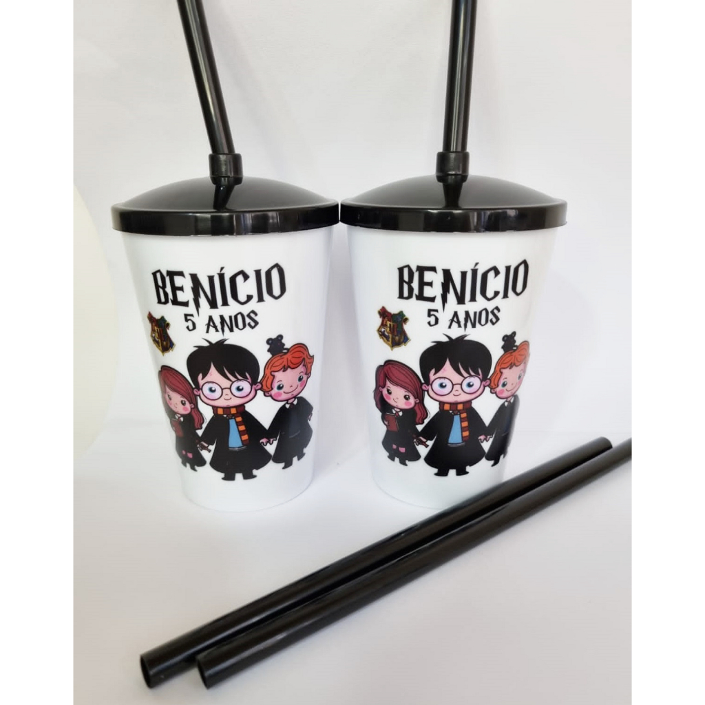 10 Copos Twister Shake C/ Tampa E Canudo Personalizado Harry Potter