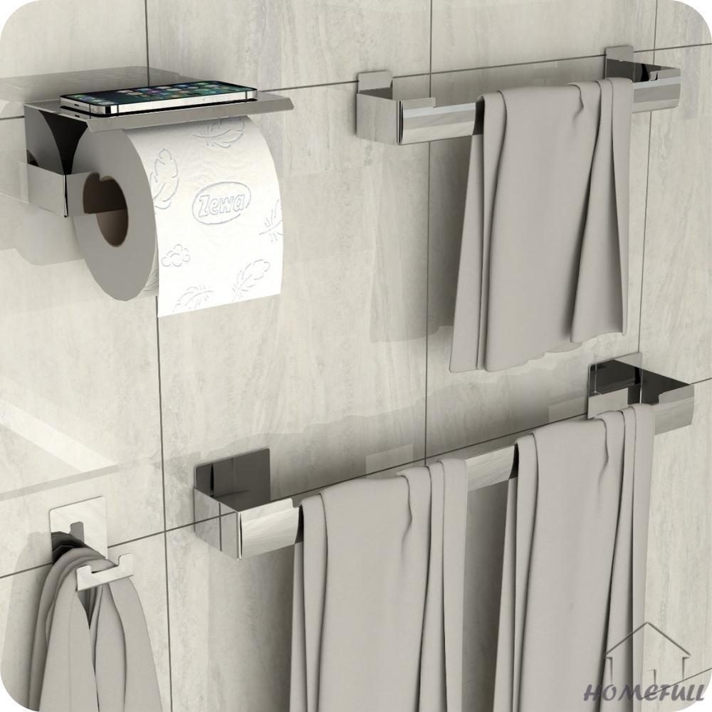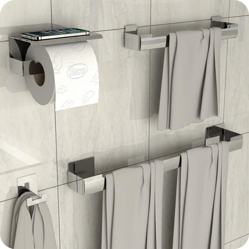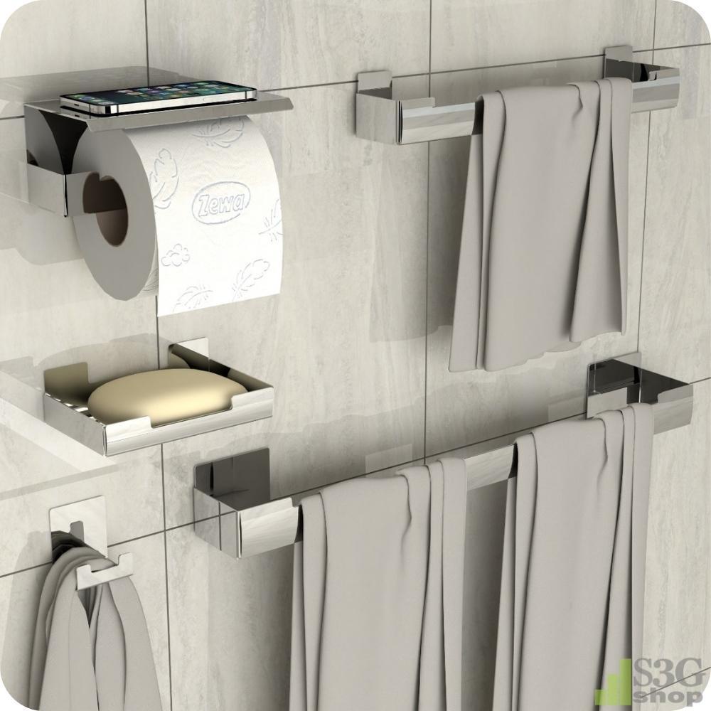 Kit Acessórios Para Banheiro Inox Com Adesivo 4 Peças ELG