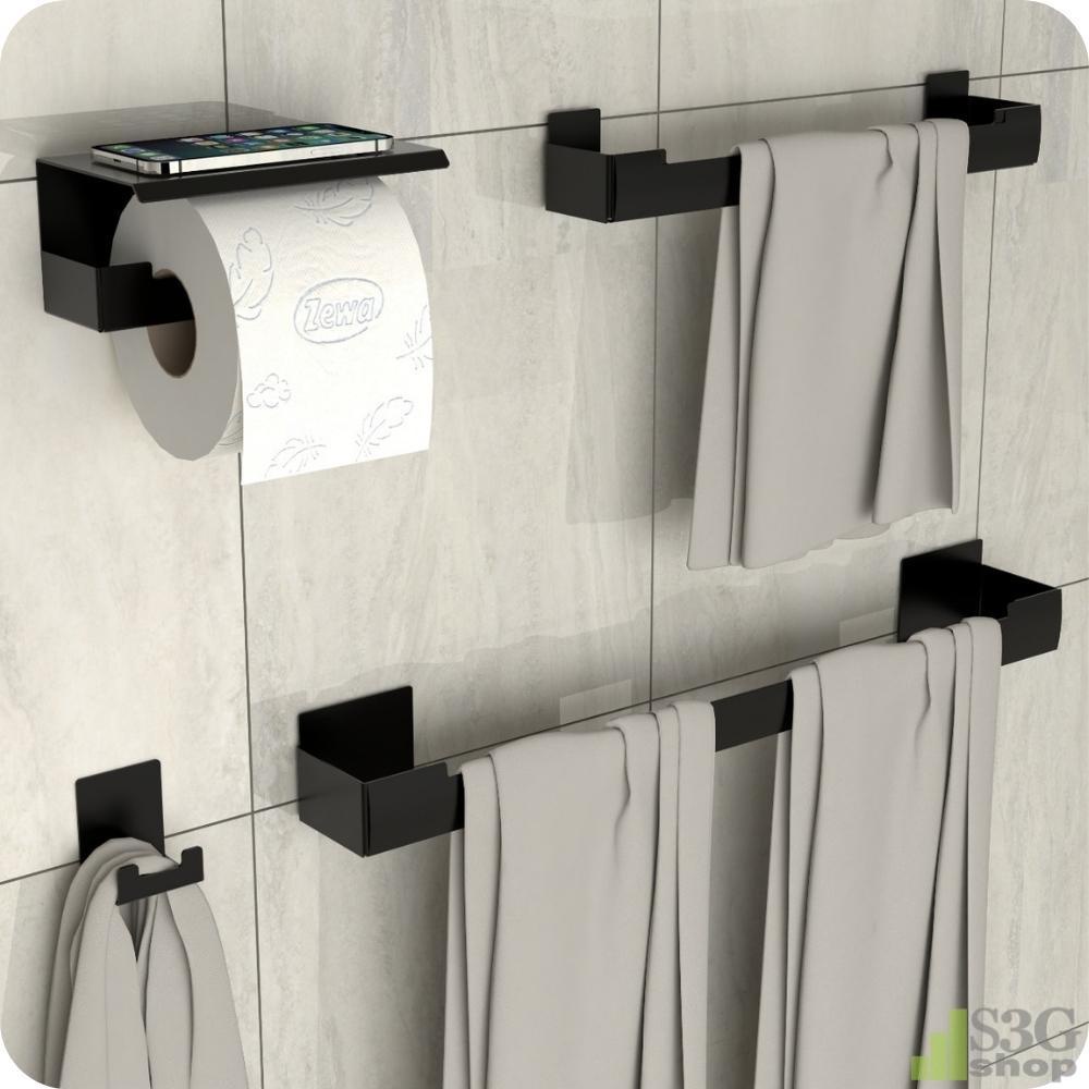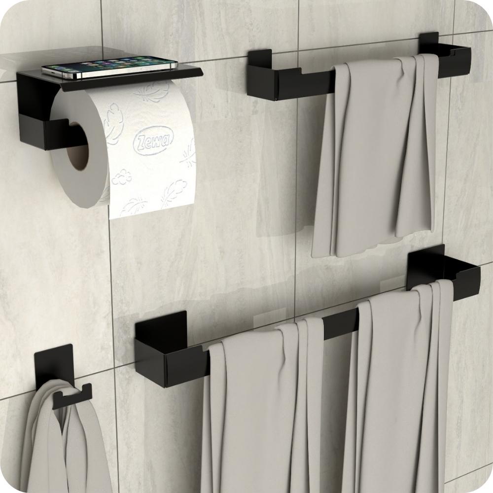Kit Acessórios Para Banheiro Com Adesivo 4 Peças Preto ELG