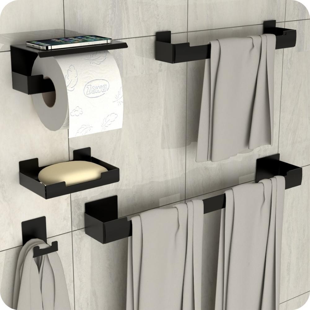 Kit Acessórios Para Banheiro Com Adesivo 5 Peças Preto ELG