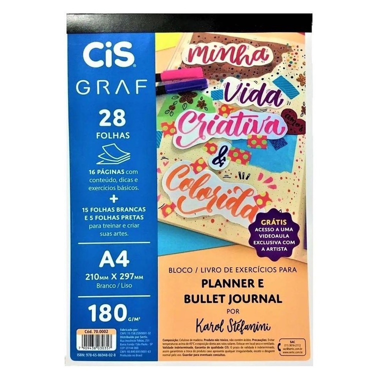 Bloco Livro de Exercícios Para Planner e Bullet Journal 28 Folhas A4 180g/m² CIS