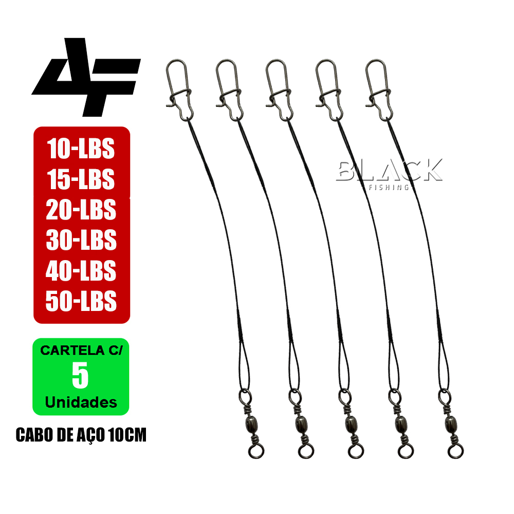 Kit com 5 Empates Cabo de Aço 45lbs Varios Tamanhos Com Snap e Girador Pesca Pescaria