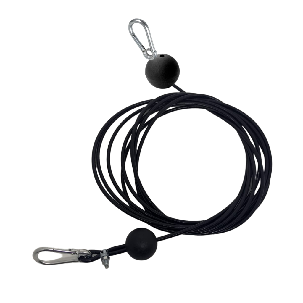 kit cabo de aço 5,3m com 2 bolinha, mosquetão grampo