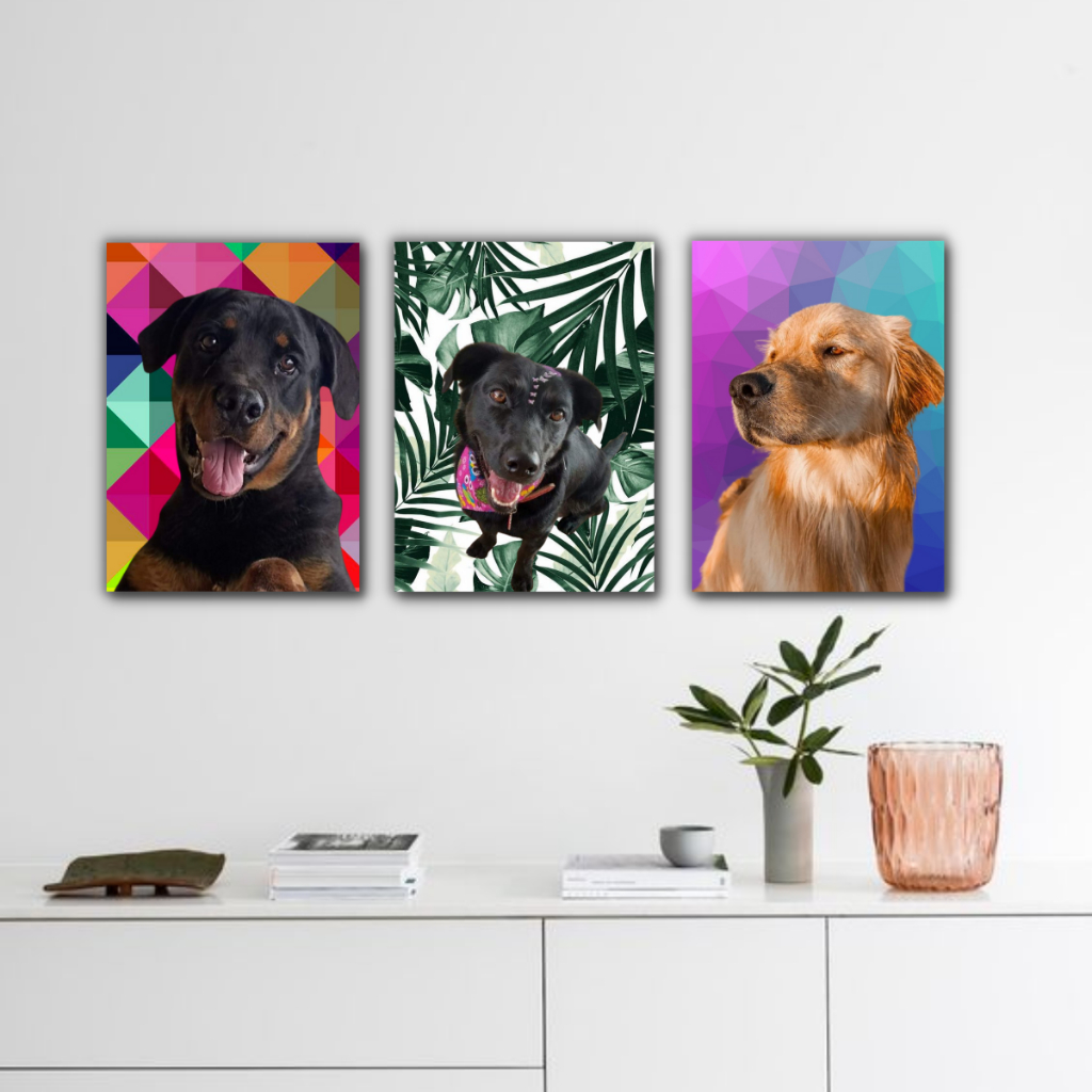 Kit 3 Quadros Decorativos Seu Pet Com Sua Imagem 21x29 MDF