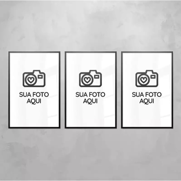 Kit com 3 quadros personalizados com foto ou imagem placa decorativa decoração sala quarto