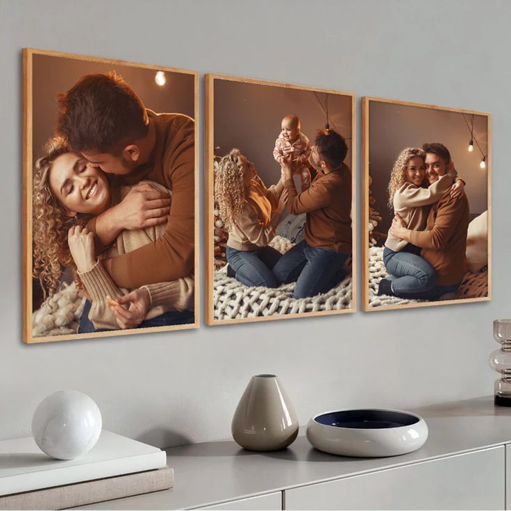 kit 3 quadros personalizados mdf com sua foto familia feliz tamanhos 40x60cm oferta
