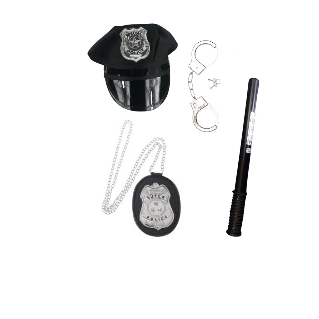 Kit Fantasia Policial c/ Quepe Algema Cassetete e Distintivo