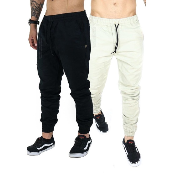 Calça cargo jogger masculino sarja e jeans coloridas com elástico pronta entrega top