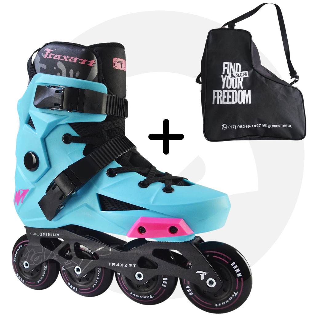 Patins Revolt Azul Inline Traxart + Mochila Lobo