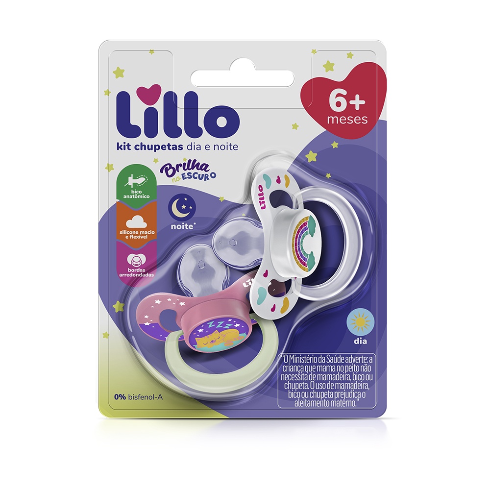 Kit 2 Chupetas Dia e Noite Brilha No Escuro 6 Meses + Rosa Lillo