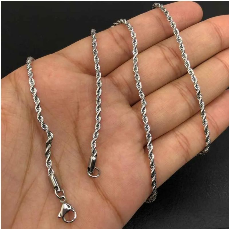 Corrente Cordão Com Pulseira Banhado Prata colar aço inox Masculina 60Cm-70cm 4mm