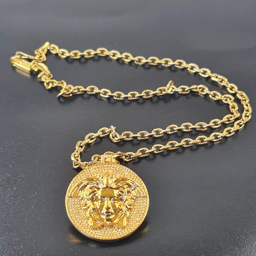 Corrente Cartier cadeado com PINGENTE VERSACE Medusa Dourado Cartier (60,70cm) cordão trançado banhado a ouro baiano colar feminino e masculino Em Aço inox 18k