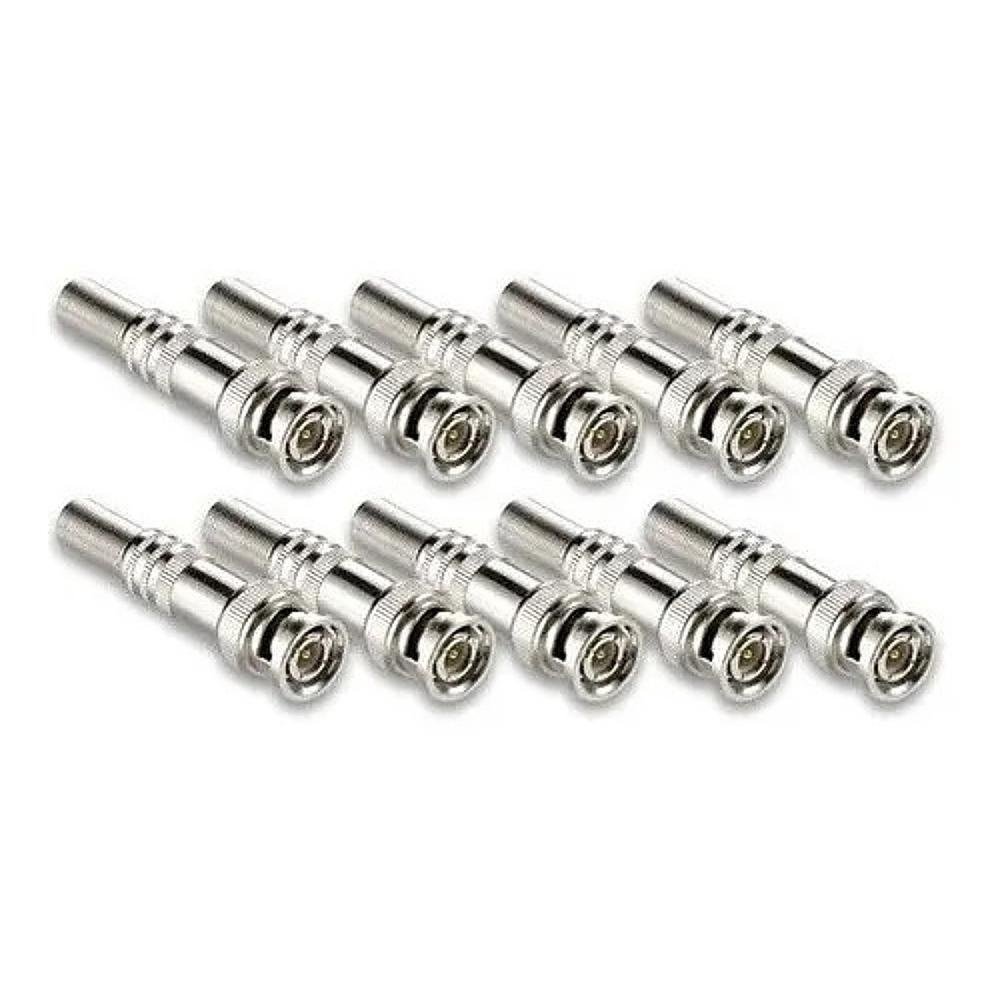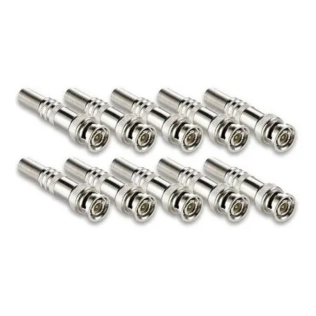 Kit 10 Conector Bnc Macho Com Mola E Parafuso P/ Cftv Câmera