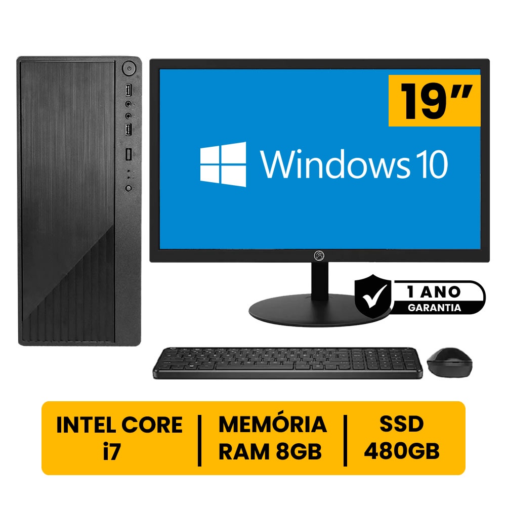 Computador Completo Intel Core I7 8gb Ssd 480gb Monitor Led 19" Hdmi C/ Windows 10