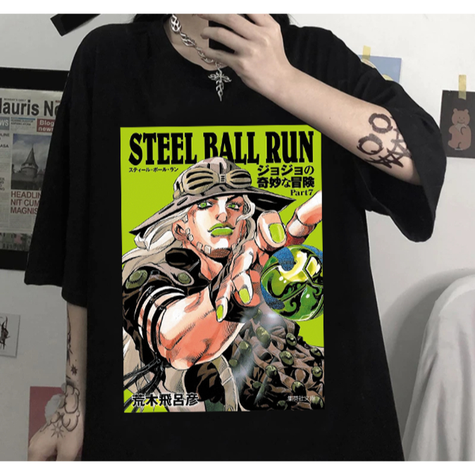 Camisa Steel Ball Run Jojo Bizarre Adventure Blusa Camiseta de Anime 100% Algodão
