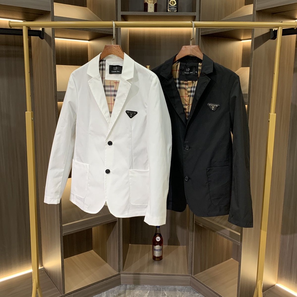 Prada 2023 Masculino Primavera, verão, outono, estação europeia, moda, jaqueta padrão triangular casual, blazer de manga comprida versátil, bonito 3CEN